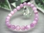 最高級ロイヤルランク☆透明!超極美!キャッツアイ効果と全玉ライラックピンク☆ナイジェリア産 クンツァイト☆約9mmブレス☆腕まわりサイズ約17+センチ☆純粋さと無償の愛を象徴するパワーストーン