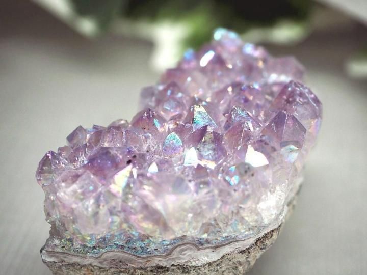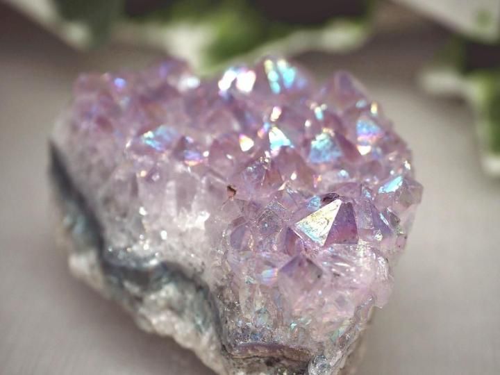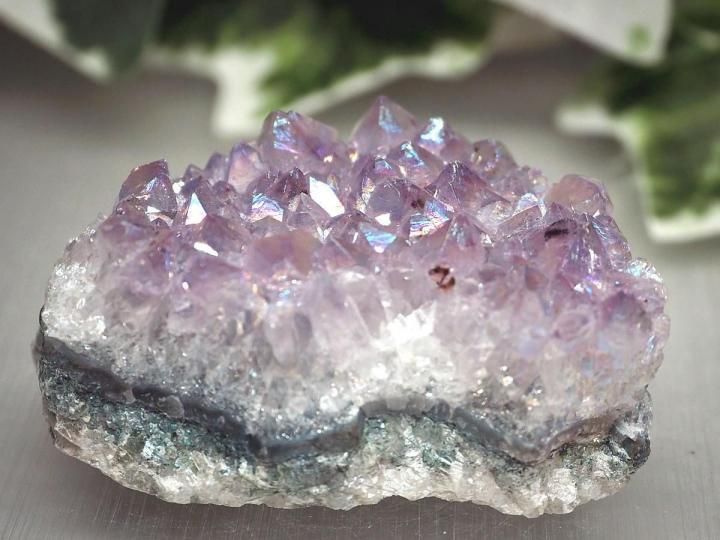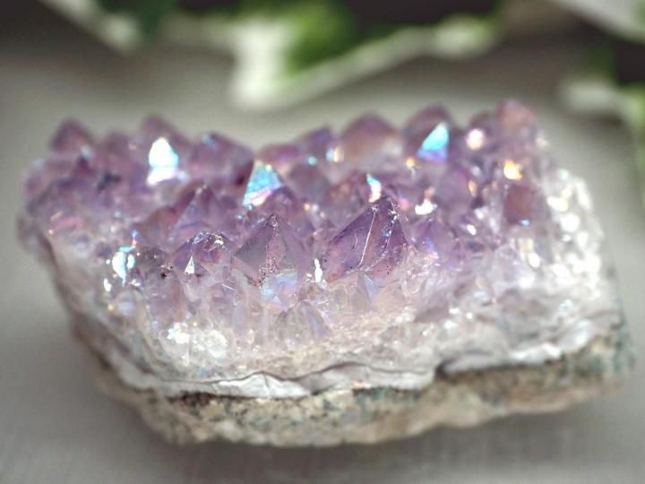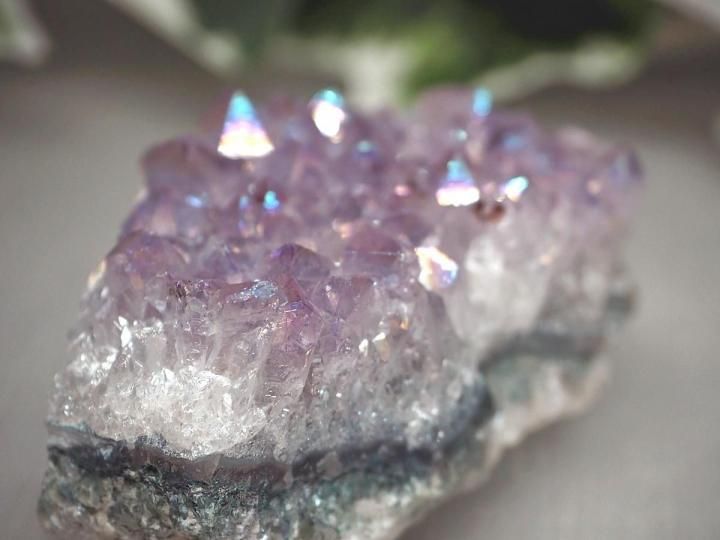 オーラアメジストは、加熱した天然アメジストに高温でイオン化した金属を蒸着させるという錬金術的な加工法を施した、自然と科学の融合とも言えるクリスタルです。