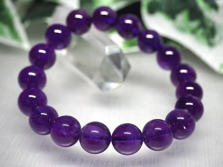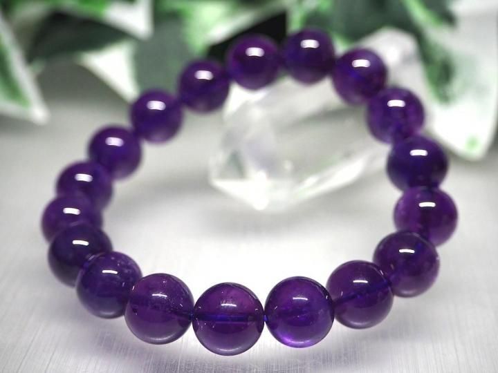 極上AAAAA☆透明度抜群で濃厚パープルカラー☆ウルグアイ産 アメジスト☆約11.5mmブレス☆腕まわりサイズ約17-17.5センチ☆愛の守護石の高級アメジスト!